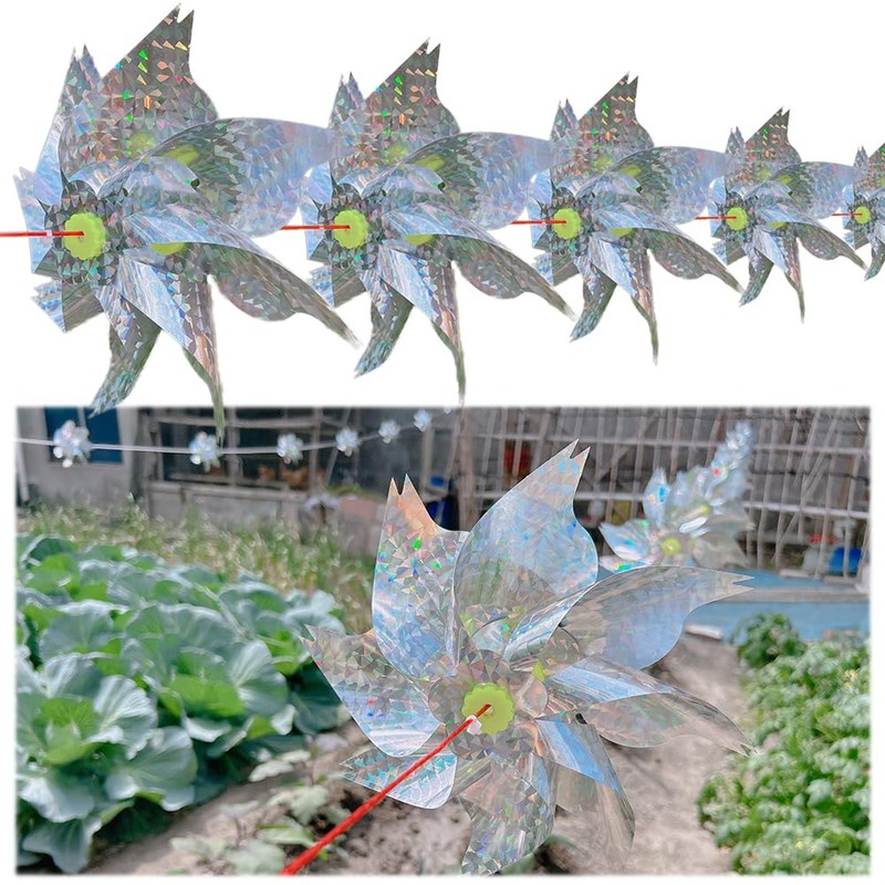 - Versatile Bird Protection: These reflective windmills work hard and look good! Protect rice fields, vegetable gardens, fruit trees, vines, orchards, gardens, barns, crops, boats, cars, windows, ponds, lawns, and yards from birds. Also makes a fun toy for kids!