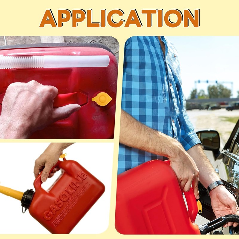Can be used onto any non-vented plastic fuel cans. Ensures no gas leaks and faster flow. Suit for Plastic and Metal Fuel Jugs.