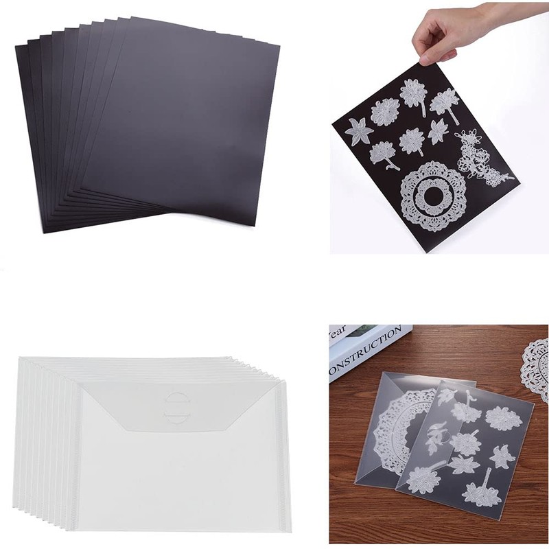 10 Pack Sturdy Clear Plastic Envelope Storage Pockets & 10Pack Rubber Soft Magnet Sheet for Cutting Dies Stencil Crafting Die Cuts Stamps Storage Sets Great for Stamper Crafter Porjects 0.5mm