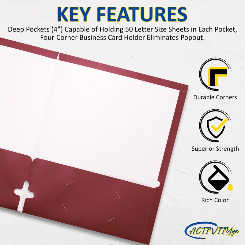 - SPACIOUS POCKETS: Each folder features deep pockets, with a generous 4" capacity, capable of securely holding up to 50 letter-size sheets. Say goodbye to worries about overflowing pockets.