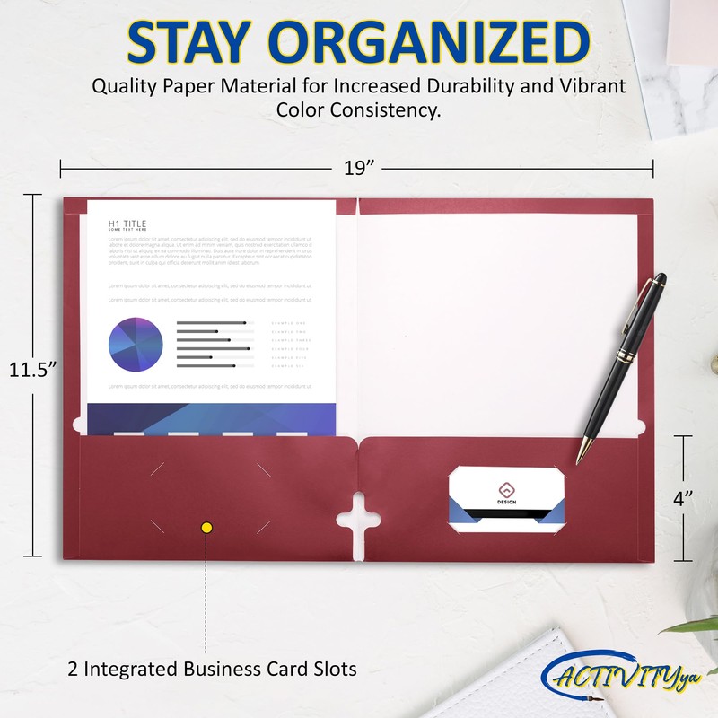 Choose our Two-Pocket Folders by ACTIVITYya for a combination of style, durability, and functionality. Whether you're in the boardroom, classroom, or home office, these folders are the ideal companion for staying organized and making a lasting impression. Upgrade your filing system today.