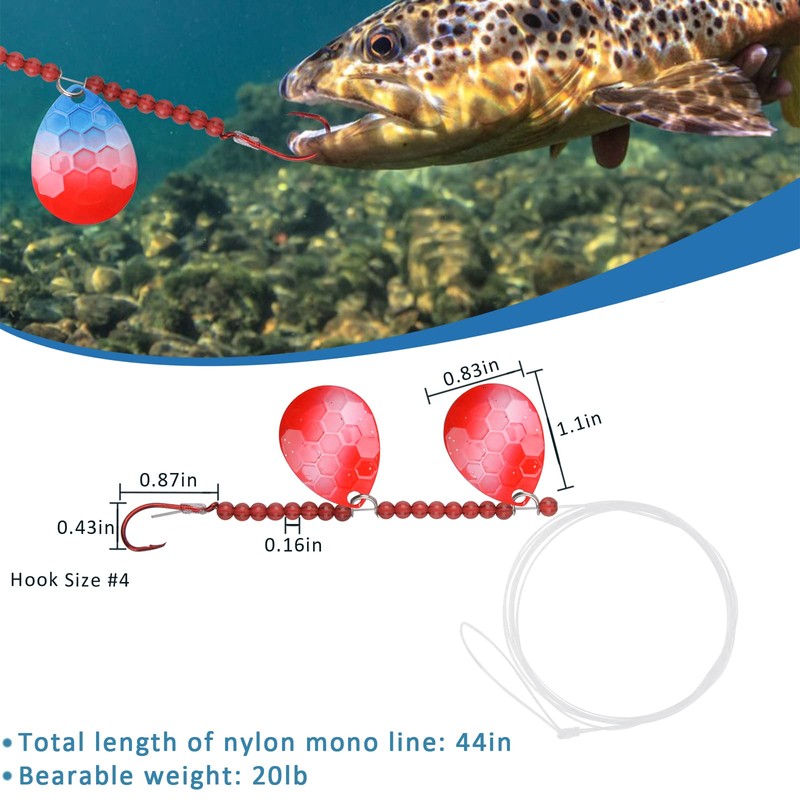 - VIVID SWIMMING ACTIONG - The exquisitely designed fishing spinner rig creates swirling swimming action as it trolls across the water and its blade rotates, make it tempting for fish to attack.