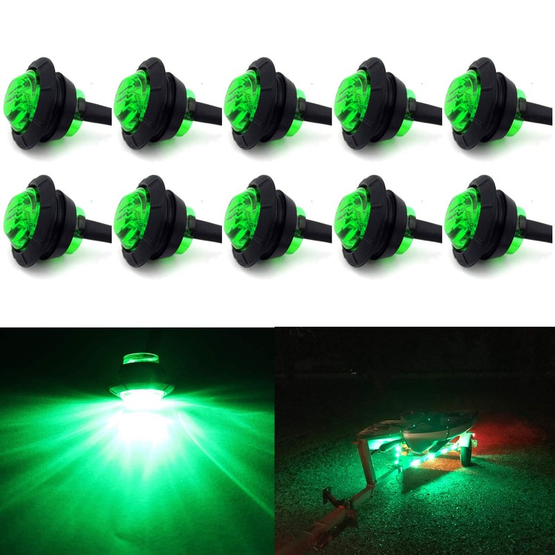 10 Pack Waterproof Marine LED Lights - Boat Underwater & Deck Courtesy Lights, 12V for Yacht, Fishing Pontoon, Sailboat, Kayak (Green)