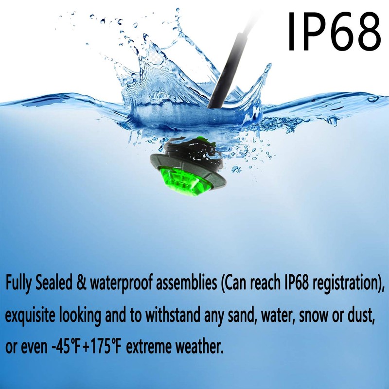 - ★ LED Marine Boat Lights parameters: DC 12V; Rated Wattage: 1.5 Watt per light; IP68 Waterproof; Lumen Maintenance Percentage>95%; Operation Temperature: -45℉+175℉; Size: Standard 3/4 Inch LED Miniature Round; More Than 100000 Hours Life.