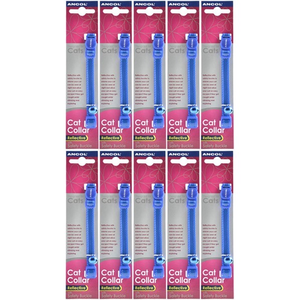 10 Pack x - Ancol - Gloss Reflective Cat Collar Blue