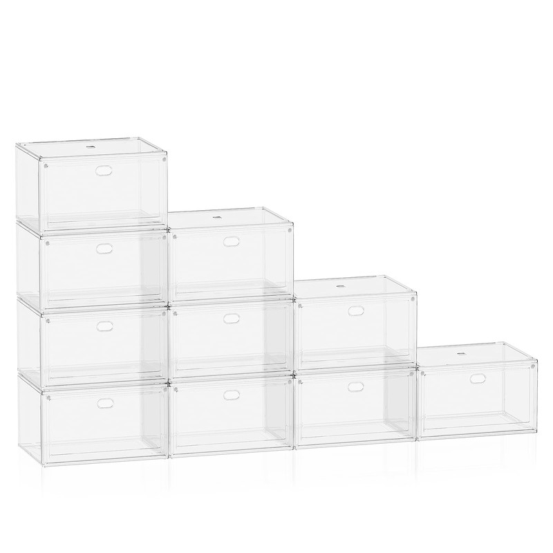 10-Pack X-Large Shoe Storage Boxes for Wardrobe, Modular Space-Saving Shoe Organizers, Clear Plastic Stackable Sneaker Display Cases with Lids (Clear Color) (X-Large)