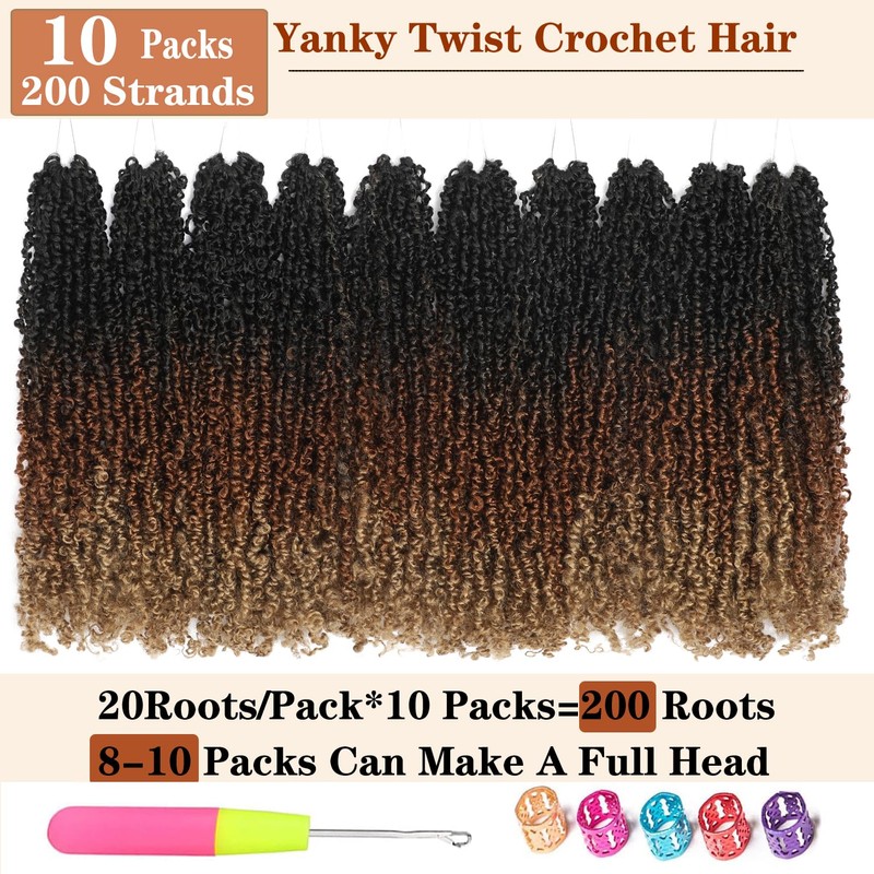 - Package:Pre-Twisted Fluffy Yankee Twist 20 Strands/Pack, 10 Pack/Lot, a total of 200 Strands, enough for you to complete a full fluffy and full hairstyle. You can add more according to your needs. Comes with a crochet needle easy to install.