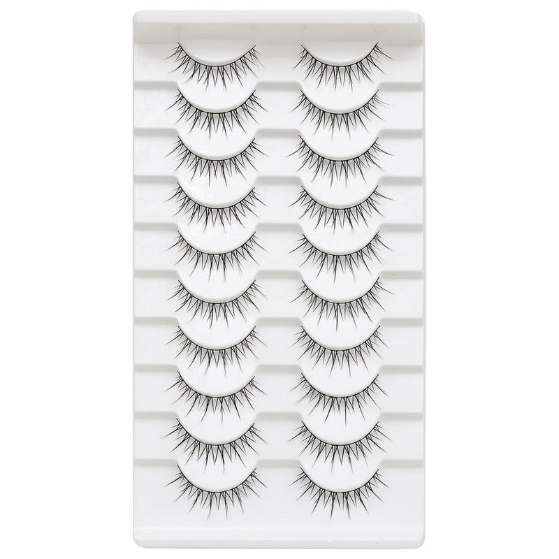10 Pairs Brown False Eyelashes Clear Band Cartoon False Eyelashes Japanese Anime Cosplay Brown Eyelashes Asian False Eyelashes Natural Look Like Individual Cluster (A03)