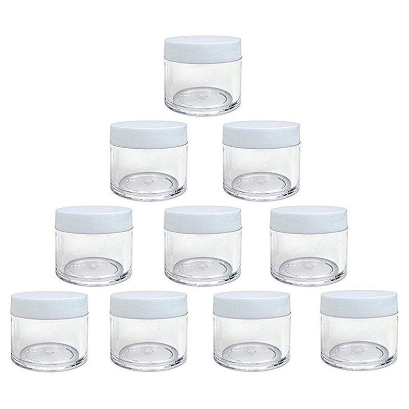 10 Pcs 30ml 1oz Plastic Cosmetic Jars Empty Refillable Clear Round Pot Jars with White Lid Makeup Sample Storage Containers for Eye Shadow Lotion Cream Jewelry Craft