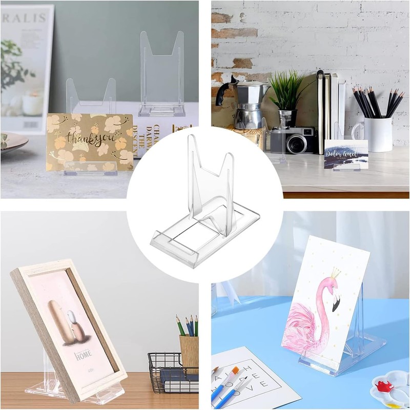 10 Pcs Acrylic Bracket Stands, Plastic Display Holders Picture Plate Holders Clear Mini Easels Stands to Display Pictures or for Home Office Supplies Festival Party Decoration