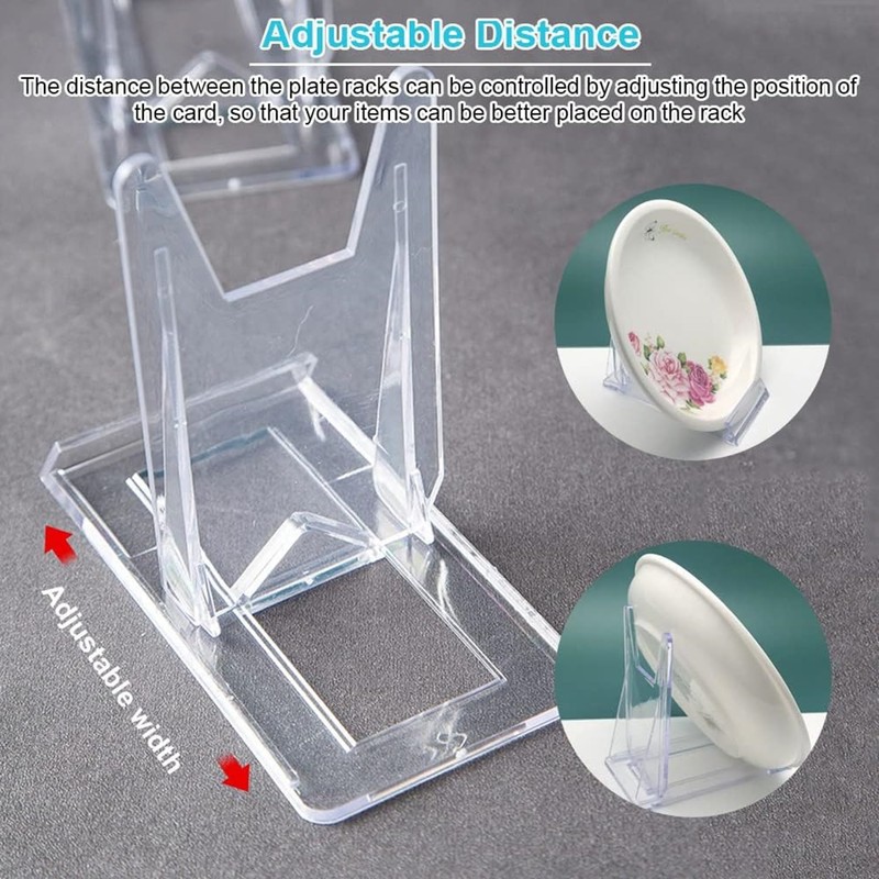 • 【Size Details】 The plate holders measure approx. 4.02 inches/ 10.2 cm in height, 2.36 inches/ 6 cm in width, suitable for 5-9 inch wide plate. A transparent will not attract too much attention or block your display work. All eyes will be attracted by your display work, and an excellent display frame should achieve these goals.
