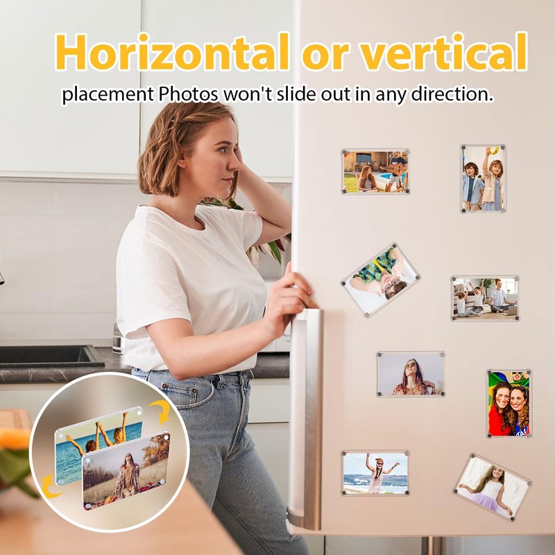 - Package Contents: You will receive an acrylic refrigerator magnetic photo frame, which allows you to easily display your favorite photos on the refrigerator. Please note that this product is not suitable for children aged 13 and under.