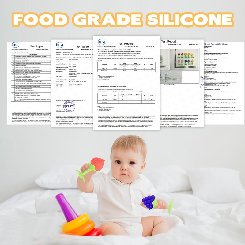 - Soothe Teething Discomfort Naturally: Made from food-grade silicone. Gentle on baby’s gums, dishwasher-safe, and boilable for hygienic peace of mind. 3D textured fruit surfaces massage tender gums, relieve teething pressure, and reduce fussiness with soft, chewable designs.