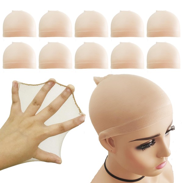 10 Pcs Beige HD Wig Cap for Women with Long Thick Hair - Thin and Transparent Stocking Hd Bald Wig Caps for Lace Front Wig Natural Look - 5 Packs/10 Pcs