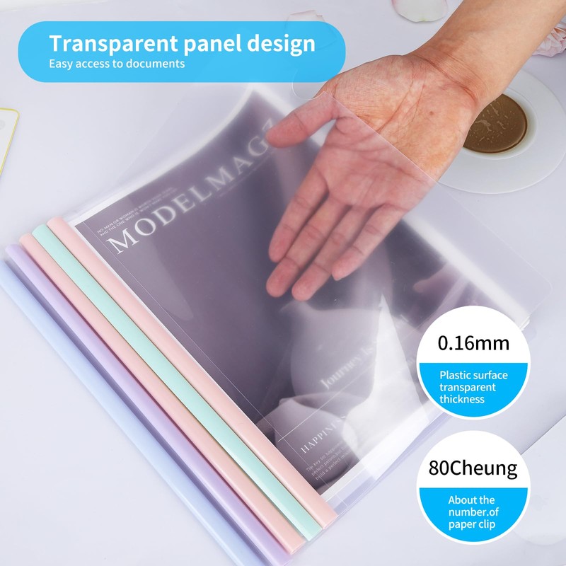Enough capacity: These slide binders a4 can hold a large amount of paper, documents, and information, with each plastic sliding folder holding approximately 50-60 sheets of A4 paper, which can be adjusted as needed.