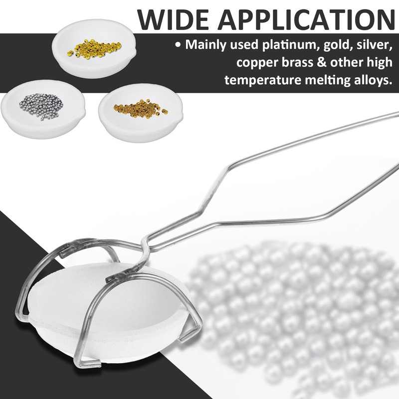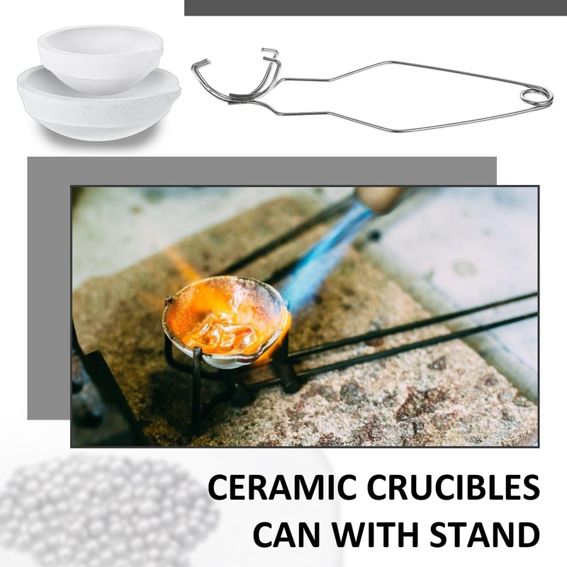 - 【Multi-function Crucible Set】- Includes 4 ceramic quartz crucibles (holding 200 grams of molten gold) and 4 upgraded and enlarged ceramic quartz crucibles (holding 500 grams of molten gold). In addition, it also comes with two stainless steel tongs (whip handle 2A), providing a comprehensive solution for precise metal melting. Suitable for a wide range of metals and alloys, these crucibles are a must-have for all your casting needs.