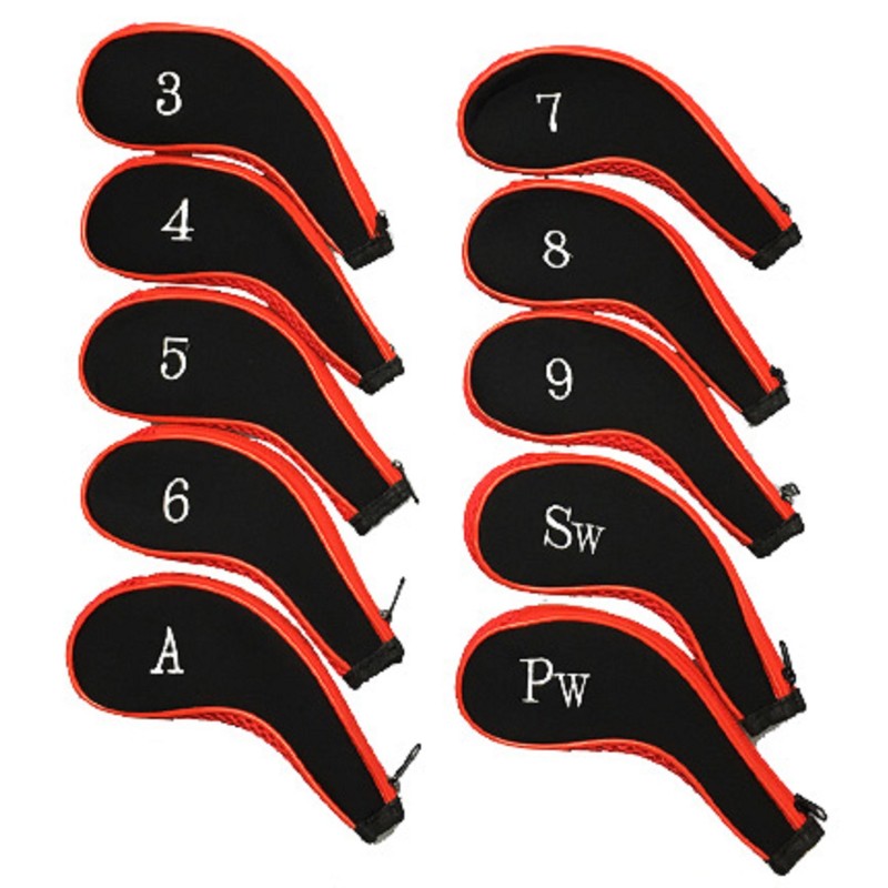 10 Pcs Cushion Zipper Golf Club Iron Covers Head Covers (Red)