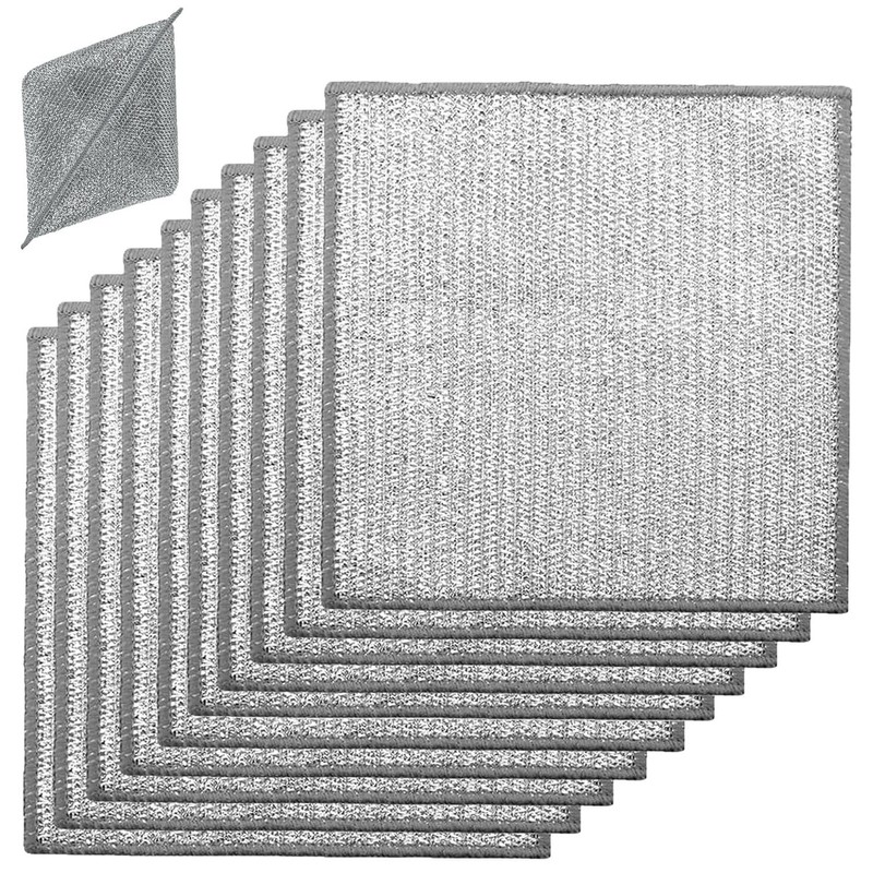 10 Pcs Double Layer Stainless Steel Scourers, 20x20cm Wire Dishwashing Cloths, Non Scratch Dish Cloths, Reusable Kitchen Cleaning Rags steel wool cleaning cloth for Pots, Pans, Sinks & Ovens (Silver)
