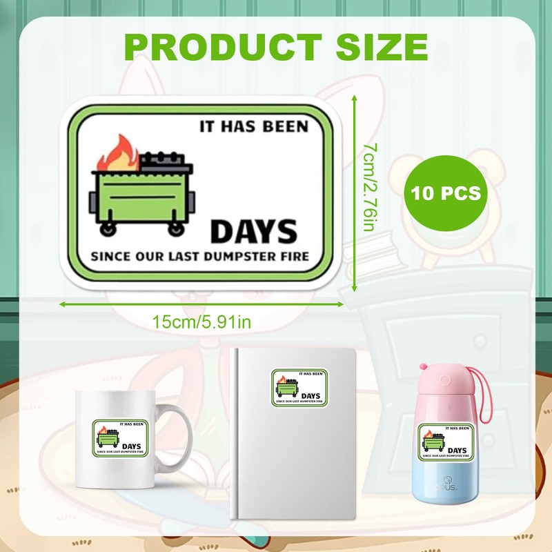 10 Pcs Funny Stickers Meme Stickers - It Has Been XX Days Since Our Last Dumpster Fire - Handwriting Blank Area Funny Laptop Sticker Scrapbook Sticker for Adults Workers Hard Hat Teens