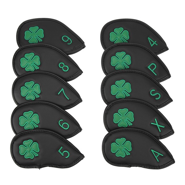 10 PCS Golf Club Head Covers Four Leaf Clover Pattern PU Waterproof Delicate Golf Iron Covers Set for Most Clubs Black