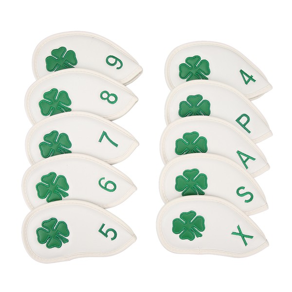 10 PCS Golf Club Head Covers Four Leaf Clover Pattern PU Waterproof Delicate Golf Iron Covers Set for Most Clubs White