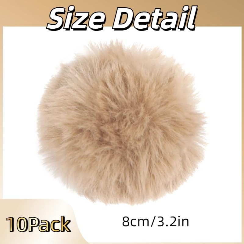 - Package include: come with 10 pieces 3.2 inch faux rabbit fur pom pom in khaiki colors as the picture show, the faux fur pom pom diameter about 8 cm, suitable for most knitting decorations. The fluffy pom pom are made of imitated rabbit fur material, which with fluffy and soft hand feel, odor free and great color fastness, perfect for DIY projects.