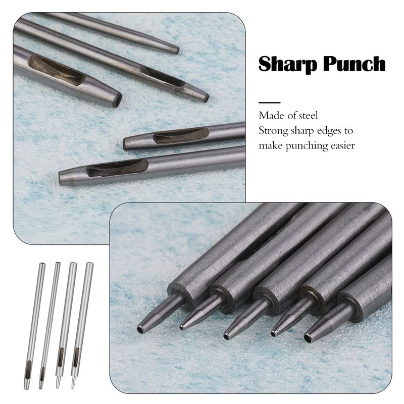 Leather Hole Punch:10pcs hollow punches with different size: 0.5mm, 0.8mm, 1.0mm, 1.2mm, 1.5mm, 1.8mm, 2.0mm, 2.5mm, 3.0mm, 3.5mm.