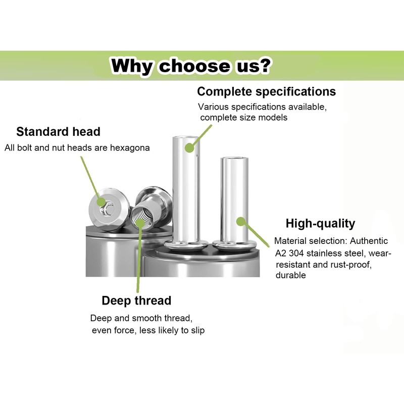 - 【High-Quality Materials】 Each nut and bolt is precision-machined from high-quality 304 stainless steel and nickel-plated materials with high hardness, good toughness, clear threads, and is not easy to loosen. This makes the kit more robust and durable
