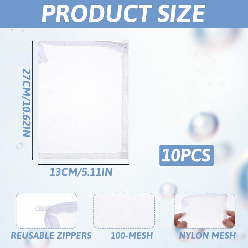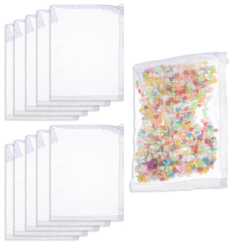 10 PCS Media Bags for Aquarium, Filter Media Bag Aquarium Mesh Bag with Zipper Small Fine Mesh Reusable Transparent for Aquariums Filter Medias Activated Carbon Fresh Saltwater Tanks(10.6" X 5.1")
