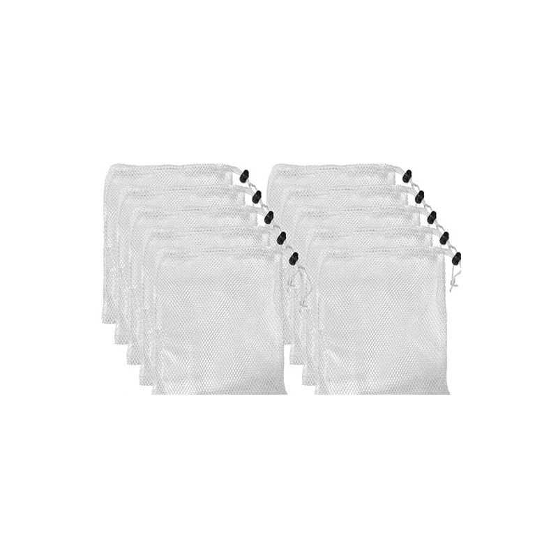 - Durable Nylon Mesh Bags: This set includes 10 white nylon mesh drawstring bags, each measuring approximately 20*15cm, perfect for holding a variety of items.