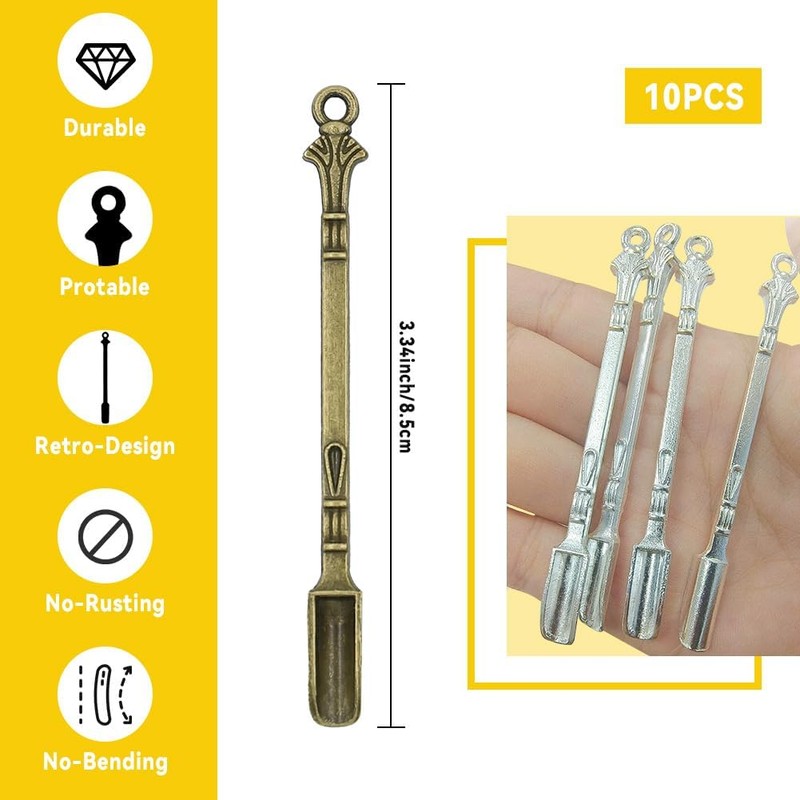 10 PCS Mini Shovel Spoons for Jewelry Making, Necklace Charms, Keychain Accessories, and Measuring Spices, Herbs, and Powder