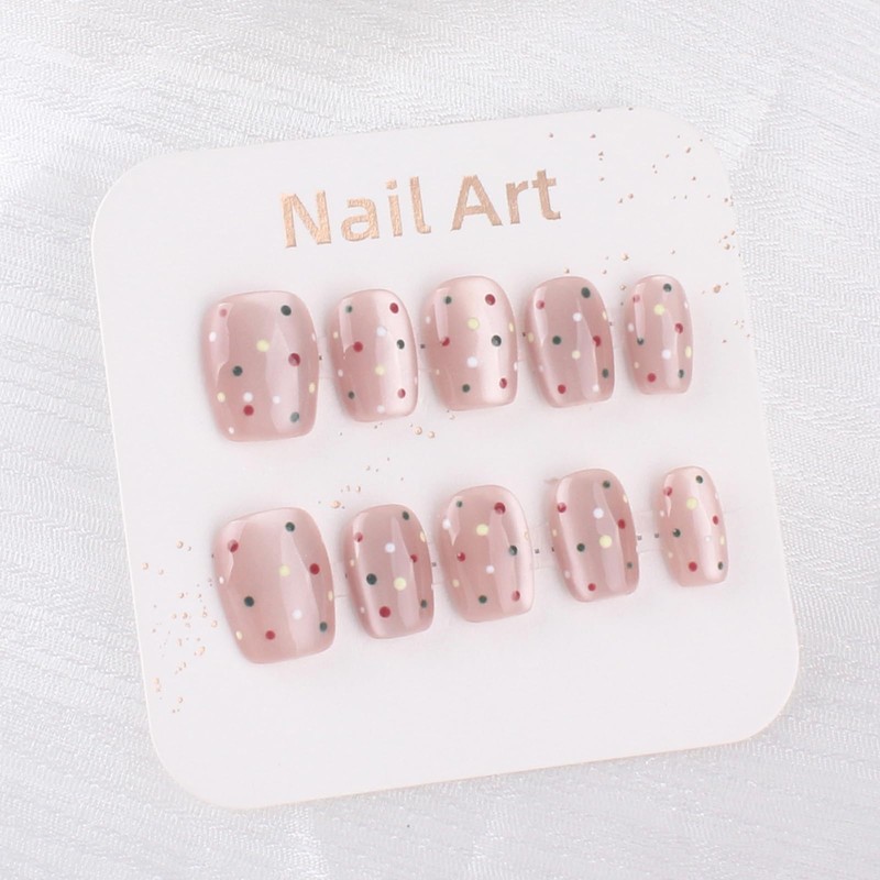 10 Pcs Nail Tips, Dot Nails, Stylish, Cool, Pop, Easy and Convenient to Apply Repeatedly, Manicurist Making, Handmade Nail Tip (Square, Short S)