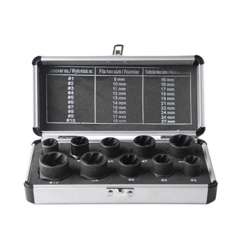 - 【 What You Get 】-- Package including a set of Bolt & Nut Remover in 10 pieces with storage case, fits hex size of 9mm, 10mm, 11mm, 12mm, 13mm, 14mm, 15mm, 16mm, 17mm, 19mm;