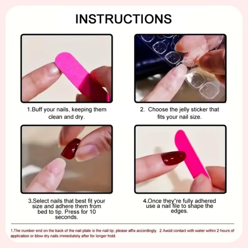 - Fashion Art Nail Art: First, trim and clean your natural nails, choose the appropriate size and apply our nail tape, then press the nails for 10 seconds. Cute nails will make you look sweeter and more charming