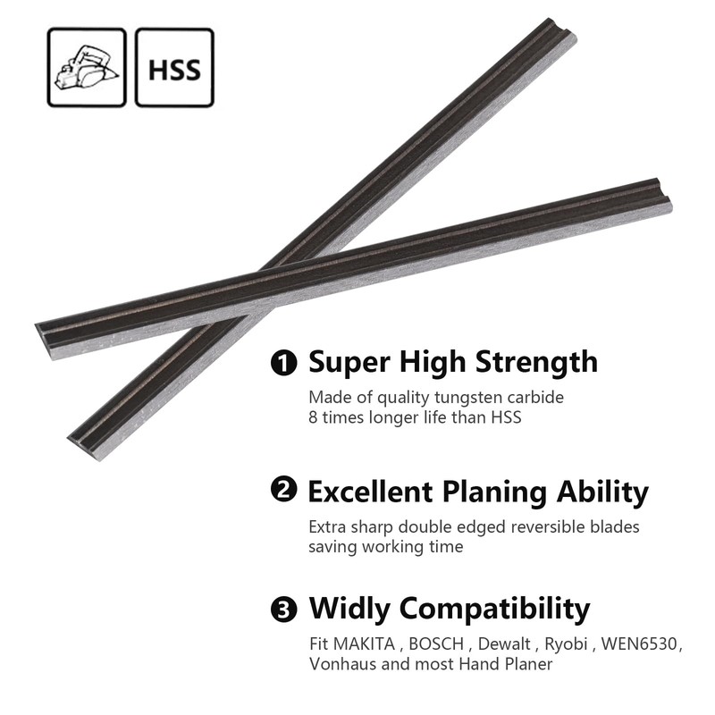 - Wide Application -- HSS planer blades is widely used as replacement blades for 3-1/4 inch planers, compatible with Makita and other brands of power tools on thr market