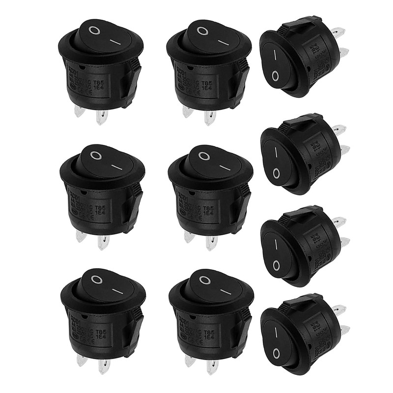 - High-Performance Round Rocker Switch: This 2-pin round rocker switch features a straightforward on/off design with 2 switch positions. Rated for a load limit of 10A/125V and 6A/250V, it is suitable for various electrical applications, providing reliable on/off control for a range of devices, from household appliances to automotive systems