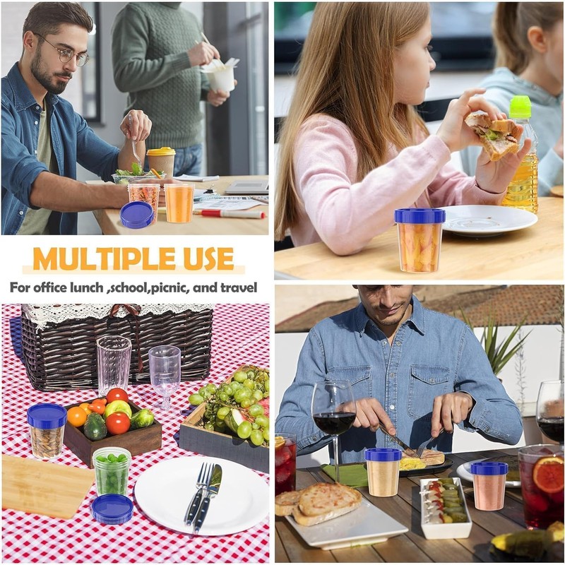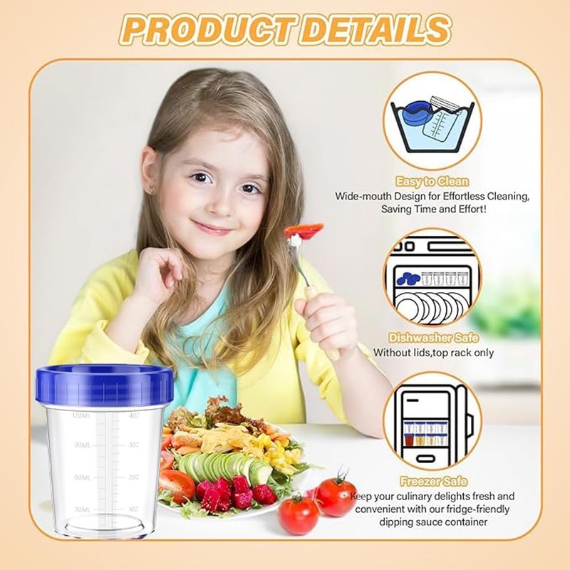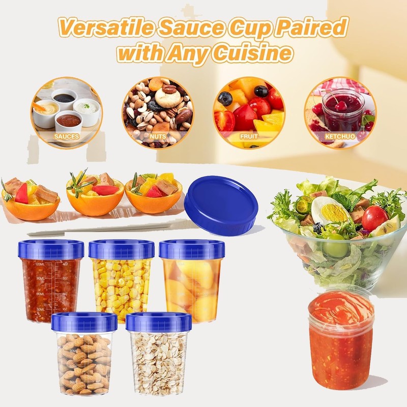 - 【Transparent with Measuring Scale】With a transparent design and a convenient measuring scale, our containers enable you to quickly view and measure the contents at a glance. This feature ensures easy portioning of dressings, dips, or snacks, improving storage efficiency and organization.