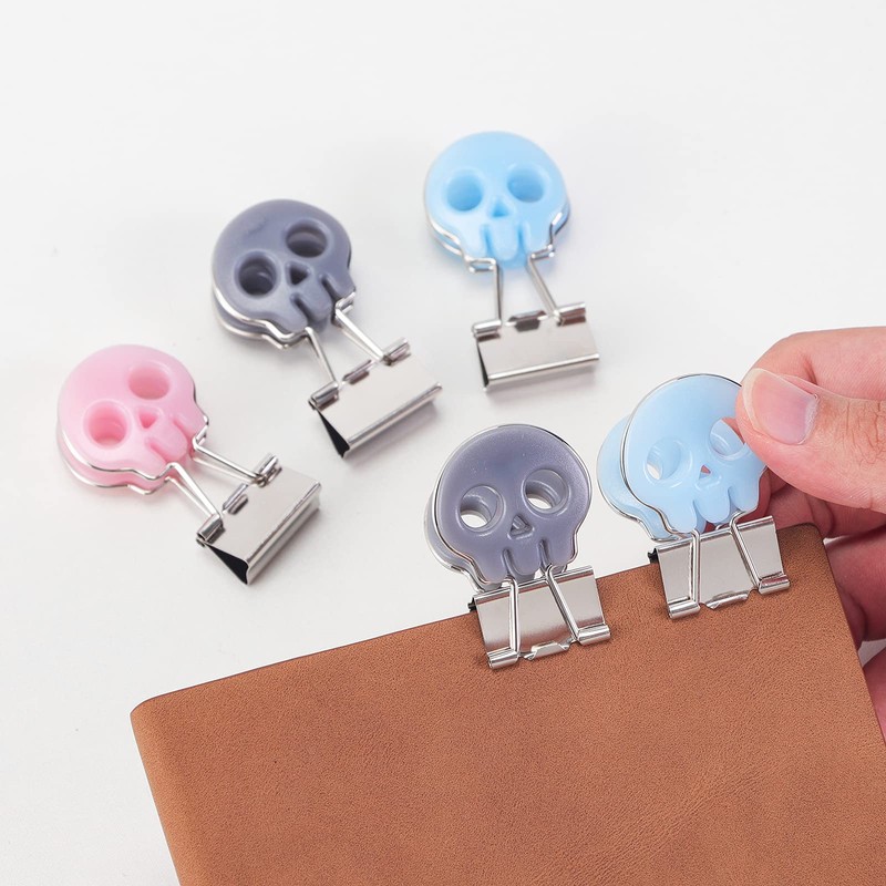 10 Pcs/Set Skull Shape Fashion Hollow Metal Binder 1 inch Clips Photo Memo Ticket Notes Letter File Paper Clips Stationery Cute Binder Clips Kawaii Pictures Photos School Office Supplies (Skull)