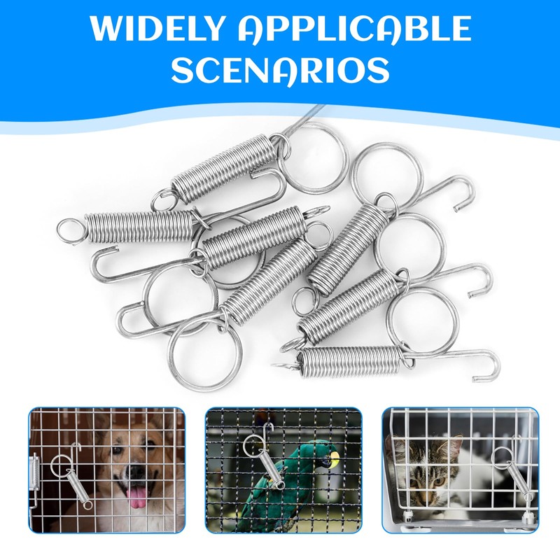 10 PCS Spring Latch for Cages, Spring Door Latch for Rabbit, Wire Cage Clips Cat Small Hook, Rabbit Wire Clips, Dog Crate Lock, Pet Dog Cat Birds Parrot Squirrel Hook