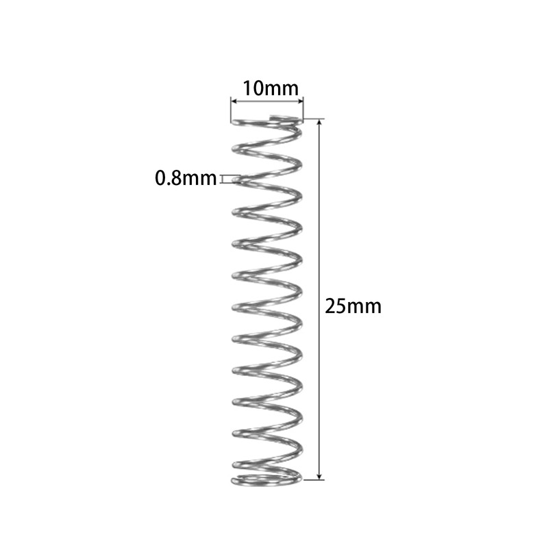 - SPECIFICATION: The compression spring has a variety of specifications to choose from. (Wire diameter x diameter x length). Wire diameter 0.8mm. Diameter 10mm, length 25mm.