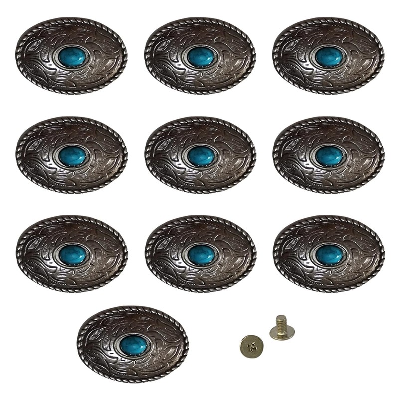 10 Pcs Turquoise Oval Leather Buckle Turquoise Metal Conchos Button Rivet Dec...