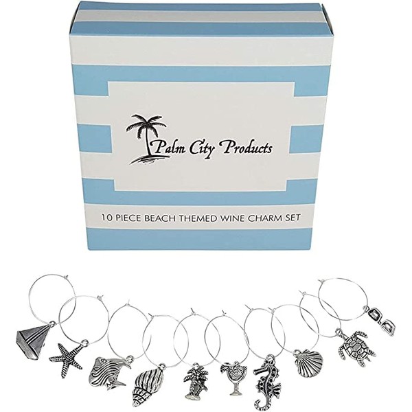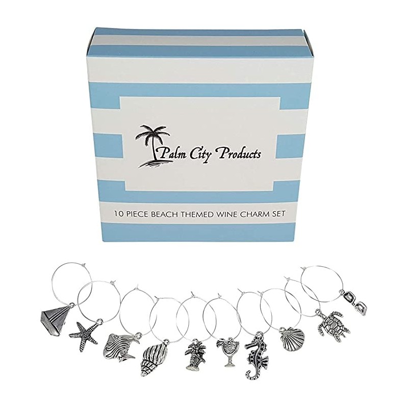 10 Piece Beach Themed Wine Charm Set