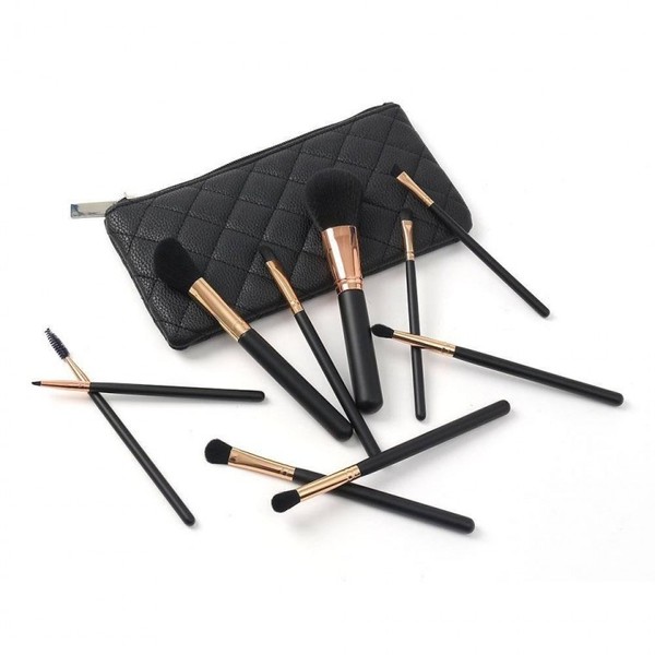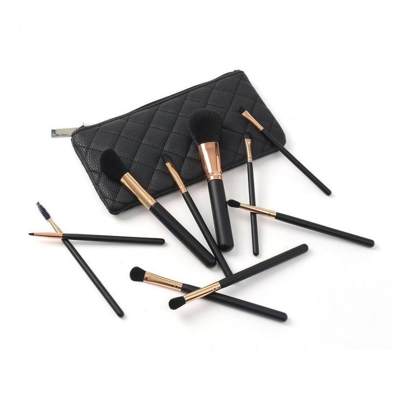 10-Piece Black Makeup Brush Set with Pouch Beauty Accessories