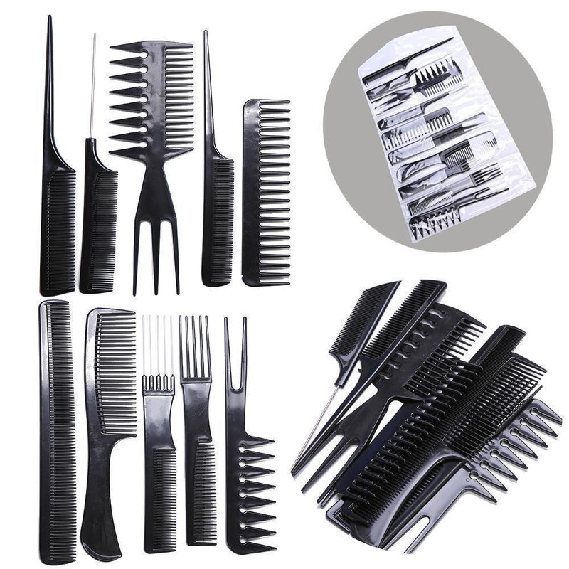 10 piece Hair Styling Comb Set Professional Black Hairdressing Brush Barbers