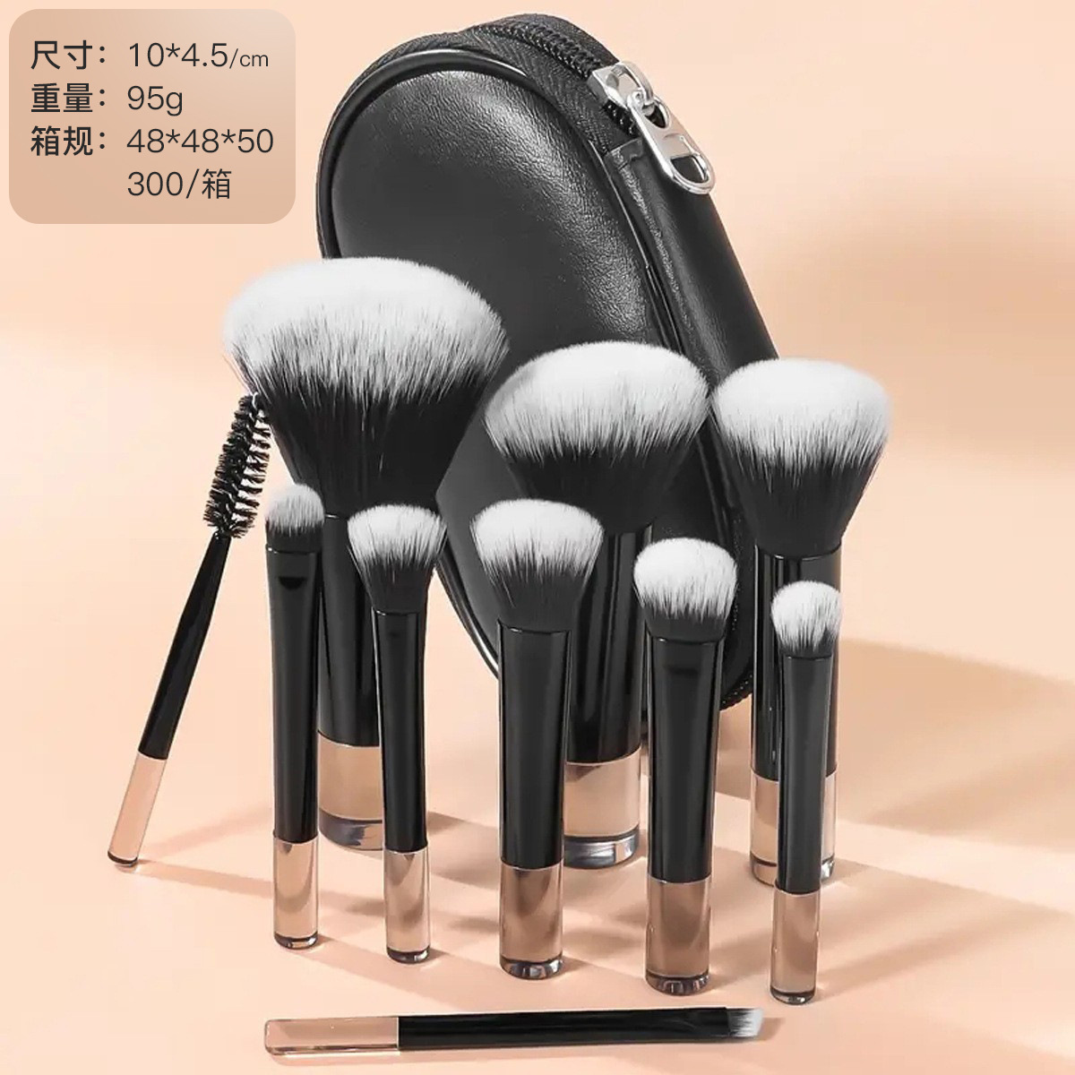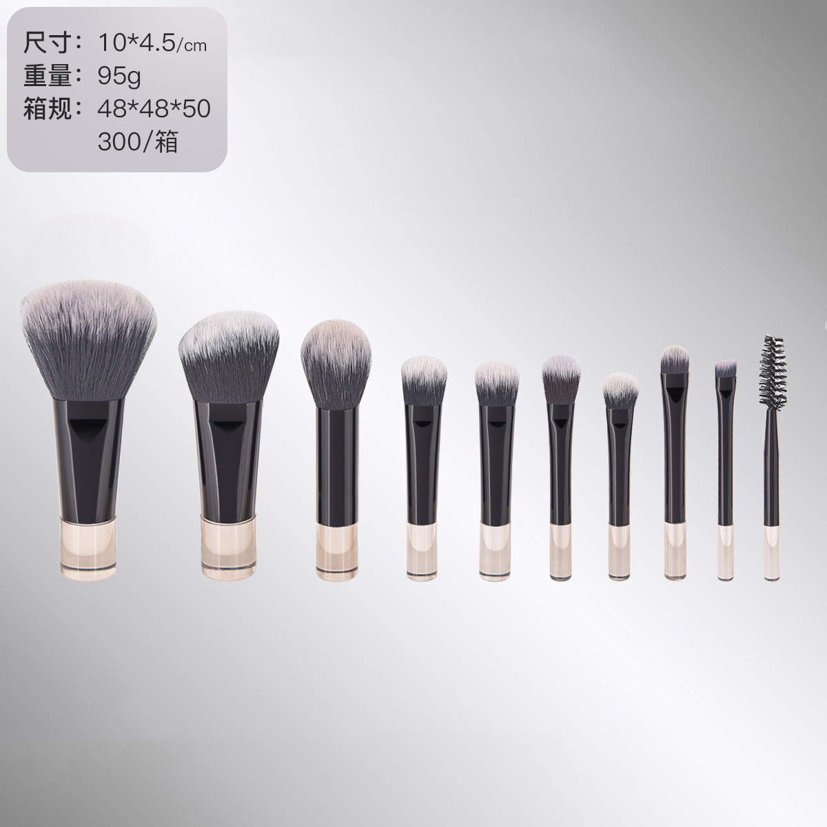 10-Piece Mini Makeup Brush Set with Crystal Handle - Portable Travel & Powder Application 10 Black Brushes 15ea