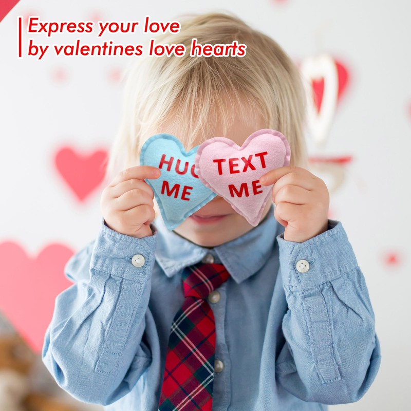 10 Pieces 5 Inches Valentines Stuffed Fabric Hearts Conversation Hearts Stuffed Plush Hearts Farmhouse Rustic Heart Ornaments Heart Decoration for Valentine’s Day Bowl Fillers