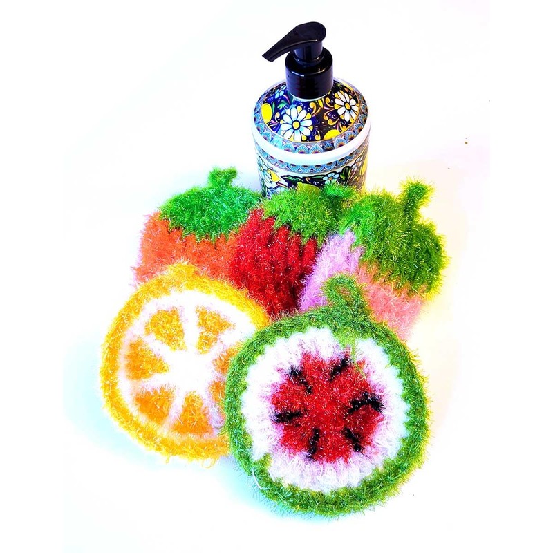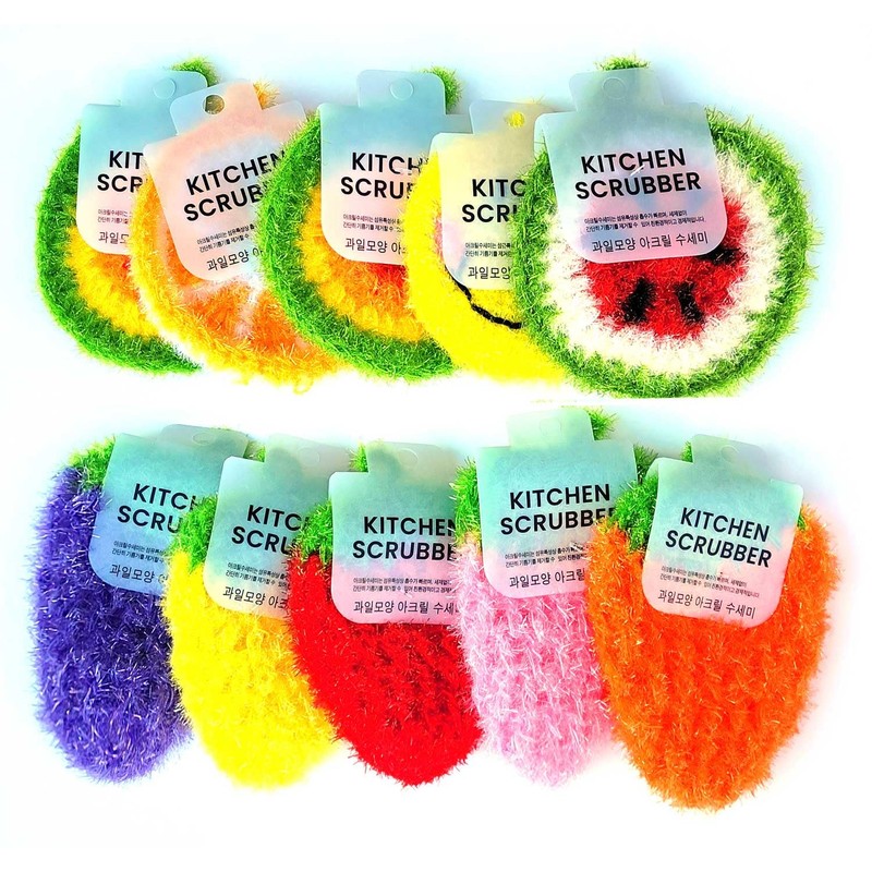 - DESIGN VARIETY: Pack of 10 fruit and cute dish scrubbers selection - from 30 different designs - strawberry, watermelon, bread and cute colorfull patterns