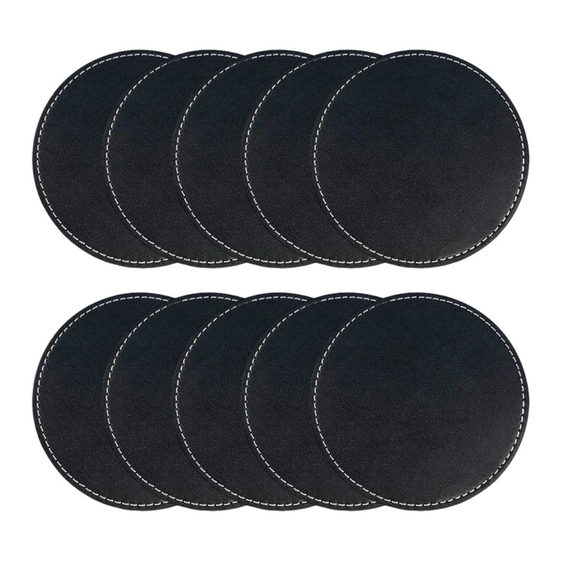 10 Pieces Black Coasters, Thermal Insulation Coasters, Pu Leather Coasters, Non-Slip Coasters, Round Coasters.