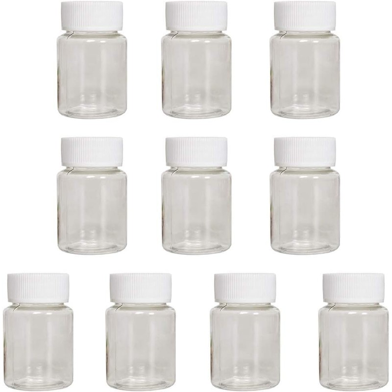 10 Pieces Clear 15ml Empty Plastic Pill Bottles Solid Powder Container Plastic Round Solid Powder Container Reagent Storage Bottle with White Screw Cap, Transparent Medication Aids