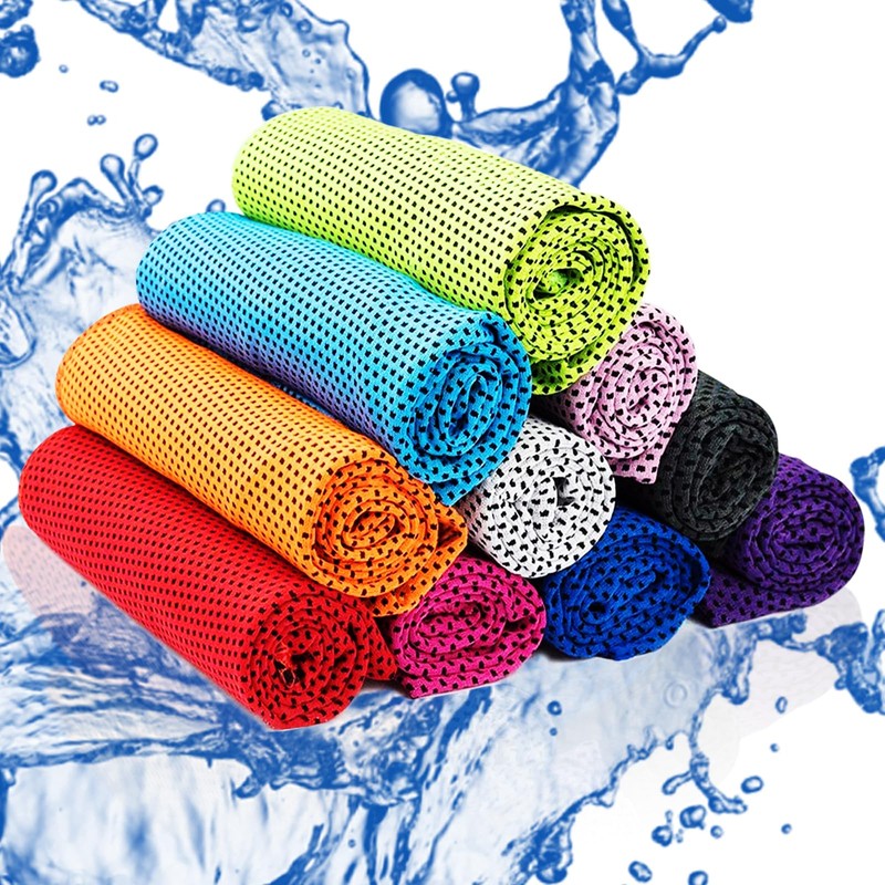 - This cooling towel is made of a high-density microfibre cooling fabric, it has excellent absorption, breathing and evaporation properties. The fibres used are safe and non-irritating and safe for human health.
